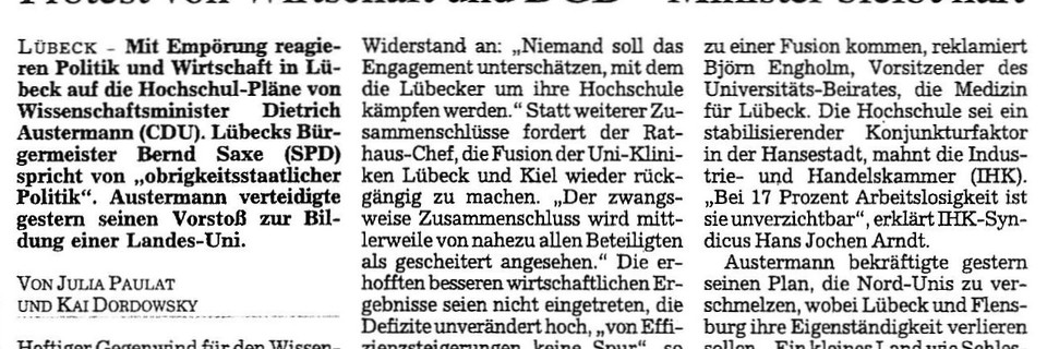1999 waren die Universitätsklinika in Lübeck und Kiel von den Universitäten losgelöst und jeweils verselbstständigt