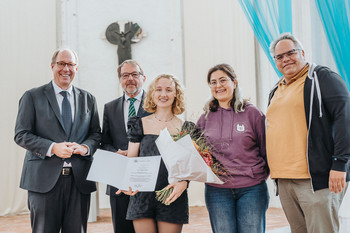 Darüber hinaus hat sie den Jahresempfang 2025 mit ihrer Kommilitonin Emily Fleischhauer professionell moderiert und damit die Uni über ihr fachliches Engagement hinaus repräsentiert.