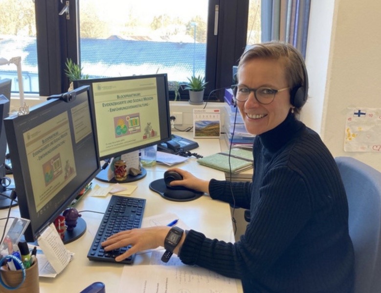 Bei den synchronen Seminareinheiten zu den Inhalten der EbM hatten wir den Vorteil, dass sich diese per se theoretischen Themen prinzipiell gut in eine Online-Lehre transferieren lassen. Dennoch waren wir am Anfang natürlich auch unsicher, wie gut das Thema Online-Lehre als bisher unbekanntes Lehrmedium überhaupt zu meistern sein wird. Den Umgang mit WebEx kannte im März 2020 noch niemand. Aber Dank engem und regem Austausch und gutem Teamwork bei uns im Lehrteam konnten wir uns relativ schnell die Funktionen und Möglichkeiten dieser Plattform aneignen und anwenden.