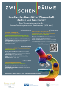 Der Sonderforschungsbereich 1665 „Sexdiversity“ lädt zu der öffentlichen Vortragsreihe „Zwi:schen:räume - Geschlechterdiversität in Wissenschaft, Medizin und Gesellschaft“ in der Lübecker Innenstadt ein. Die Reihe greift aktuelle Diskussionen um Geschlechtervielfalt auf und bringt wissenschaftliche Perspektiven mit Erfahrungen aus Praxis und Alltag ins Gespräch. Ziel ist es, gesellschaftliche und wissenschaftliche Bedeutungen sowie Herausforderungen von Geschlechtsdiversität sichtbar zu machen und mit einer interessierten Öffentlichkeit zu diskutieren.