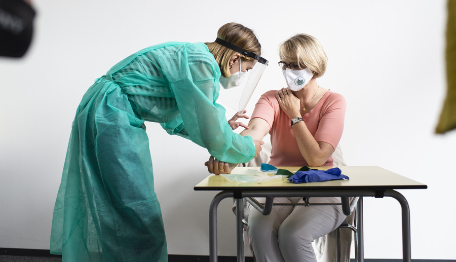 Ministerin Anja Karliczek beteiligt sich mit einer eigenen Blutprobe an der ELISA-Studie