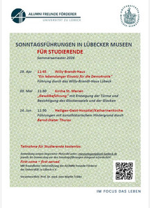 Die Museumsführungen für Studierende finden mit freundlicher Unterstützung der Alumni, Freunde und Förderer der Universität zu Lübeck e.V. statt. Verantwortlich ist Prof. Dr. Jens-Martin Träder.