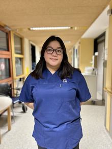 Kasia Sulistyo trägt einen blauen Kasack und steht im Flur der Station A.123T (Transplantation) im Universitätsklinikum Schleswig-Holstein. Die Pflegestudierende ist im siebten Semester des dualen Bachelor-Studiums und lernt mit drei weiteren Studierenden des interprofessionellen Teams den Bereich der Nierentransplantation kennen. „Ich bekomme durch LIPSTA die Möglichkeit, selbstsicherer zu werden“, sagt Sulistyo. „Das Angebot bietet die Chance, den Übergang vom Studium zum Beruf besonders gut zu begleiten.“