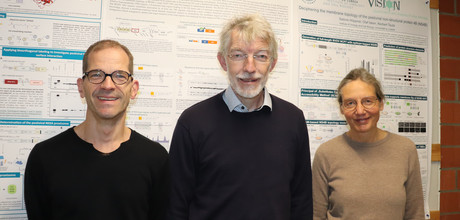 Die Forschenden Dr. Olaf Isken, Prof. Dr. Norbert Tautz und Stefanie Schwindt (v.l.n.r.) vom Institut für Virologie und Zellbiologie der Universität zu Lübeck waren an einer internationalen Studie beteiligt, die zeigt, wie Schweine durch eine gezielte Genveränderung vor dem Virus der Klassischen Schweinepest geschützt werden können. (Foto: privat)