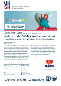 Ziel der internationalen Initiative „World Restart a Heart“ ist es, öffentliche Aufmerksamkeit für das Thema der Herz-Lungen-Wiederbelebung zu erlangen und noch mehr Menschen für dieses Thema zu sensibilisieren. Das Universitätsklinikum Schleswig-Holstein als Mitgliedsklinik der IQM (Initiative Qualitätsmedizin) veranstaltet dazu auf dem Gelände der Christian-Albrechts-Universität zu Kiel und der Universität zu Lübeck ein Event.