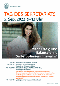 Im Jahr 2022 steht der Tag des Sekretariats unter dem Motto: "Mehr Erfolg und Balance ohne Selbstoptimierungswahn". Eingeladen sind Sekretär*innen und Assistent*innen, um für die tägliche Arbeit zu danken und ein Forum für Information und Networking zu aktuellen Themen anzubieten.