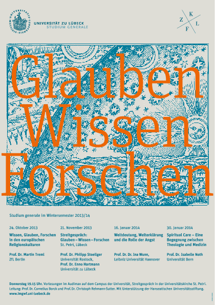 Es diskutieren Prof. Dr. Philipp Stoellger (Theologie, Universität Rostock) und Prof. Dr. Enno Hartmann (Biologie, Universität zu Lübeck), moderiert von Dr. Bernd Schwarze, Universitätskirche St. Petri, und Prof. Dr. Cornelius Borck, Universität zu Lübeck.