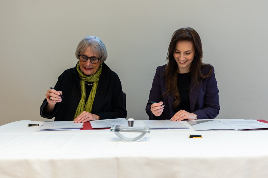 In Kiel unterzeichneten die kommissarische Präsidentin der Universität zu Lübeck, Prof. Dr. Gabriele Gillessen-Kaesbach, und Innenstaatssekretärin Magdalena Finke die neue Kooperationsvereinbarung zwischen Landespolizei und Universität zu Lübeck. Foto: Jonas Makoschey / Innenministerium Schleswig-Holstein