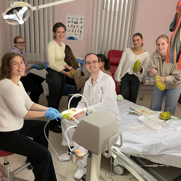 „Die operations-technischen Assistentinnen und Assistenten, die Hebammen, viele Kolleginnen und Kollegen sowie mein Chef, Prof. Dr. Rody, standen hinter dem Projekt, haben mitangepackt und sich schnell für das Konzept begeistern können, das gemeinsam mit der Co-Leitung des Wahlfachs Prof. Dr. Banys-Paluchowski ausgearbeitet wurde“, hebt Dr. Tauber zu seiner Seminarreihe hervor. Als besonders gelungen sieht er die enge Einbindung einer studentischen Tutorin bereits in der Konzeptions- und Planungsphase. Durch diese frühe studentische Perspektive habe das Lehrkonzept gezielt an den tatsächlichen Bedürfnissen und Erwartungen der Studierenden ausgerichtet werden können.