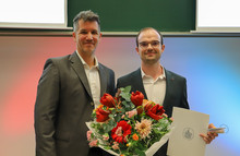 Der Universitätslehrpreis 2025 wurde Dr. Nikolas Tauber (rechts) auf dem Tag der Lehre am 14. November von Vizepräsident Prof. Dr. Till Tantau verliehen (Foto: Daniel Hoth / Universität zu Lübeck)