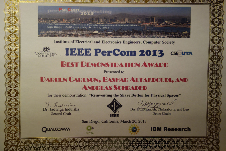 Das Forschungsgebiet des Pervasive Computing beschäftigt sich mit der Integration von Informations- und Kommunikationstechnologien in Alltagsgegenständen. Die vom internationalen Ingenieursverband IEEE ausgerichtete Konferenz ist die führende wissenschaftliche Konferenz auf diesem Forschungsgebiet. Im Rahmen der „Demo Session“ werden ausgewählte Beispiele bahnbrechender Entwicklungen aus Industrie und Forschung präsentiert. Die Auswahl der Gewinner erfolgte aufgrund einer ausführlichen schriftlichen Beschreibung des Forschungsbeitrages, eines Vortrages, sowie einer Demonstration eines voll funktionsfähigen Prototyps vor dem weltweiten Fachpublikum.