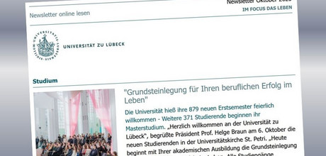 Mit dem Newsletter informieren wir Sie einmal im Monat, immer am Fünfzehnten, per Email über Neuigkeiten aus der Universität. Wir wenden uns damit an die Angehörigen der Universität, an die, die ihr als Freunde und Förderer verbunden sind, an die Ehemaligen und an alle diejenigen, die einfach genauer wissen wollen, wie sich die Universität entwickelt und was an ihr geschieht. Mit unseren Rubriken wie „Studium“, „Forschung“, „Preise“, „Neu an der Uni“, „Alumni“ und dem Veranstaltungskalender möchten wir dazu beitragen, dass Sie über Ihre Alma mater immer auf dem Laufenden sind.