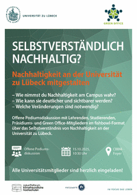 - Save the date: Am 15.10.2025 findet die perspektive n, eine moderierte Fishbowl-Diskussion zu Nachhaltigkeitsthemen, von 10:30-13:30 Uhr im CBBM-Foyer statt. Alle interessierten Universitätsmitglieder sind herzlich eingeladen!
