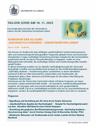 Die Nachhaltigkeitsbildung (BNE) ist ein zentrales Handlungsfeld der Nachhaltigkeitsstrategie der Universität zu Lübeck, dem eine besondere Bedeutung zukommt. Unsere Absolvent*innen sind Multiplikator*innen für gesellschaftliche Impulse, die weit über die Region hinausreichen. Dementsprechend werden Lehr-Lernangebote entwickelt, um Nachhaltigkeitskompetenzen für das Lebens- und Arbeitsumfeld unserer Studierenden weiter aufzubauen.